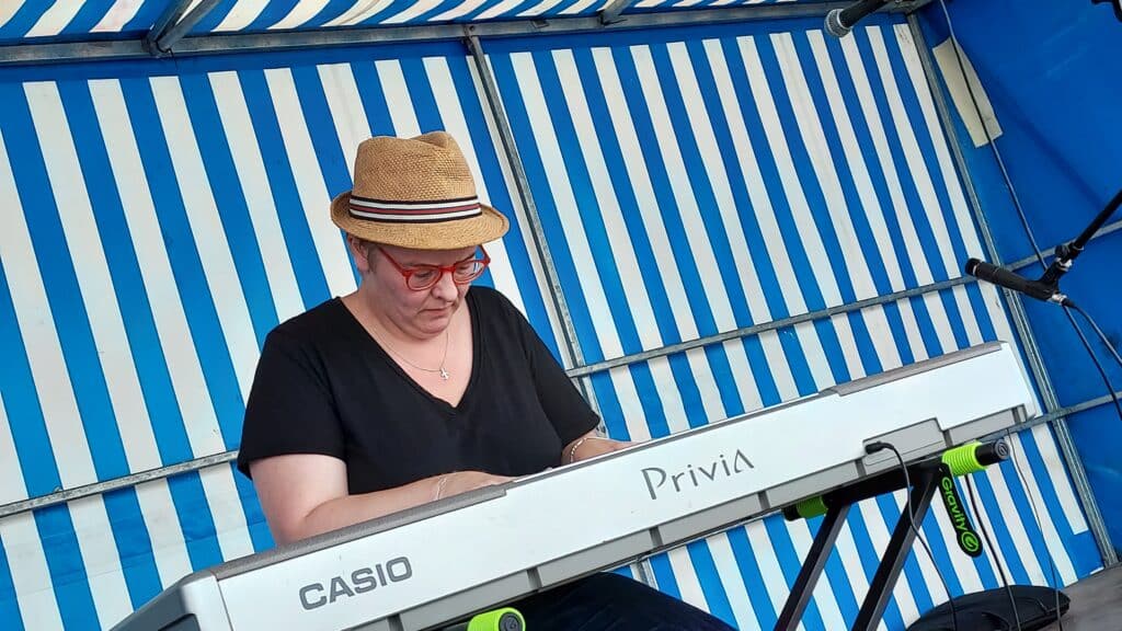 Julie a un talent fou et une personnalité de folie. Sa passion: le patrimoine. Elle est guide-conférencier à Paris. Vous pourrez notamment avec elle découvrir le 15ème arrondissement autrement dans des parcours atypiques, participatifs et ouverts à tous. Mais quand on parle de patrimoine avec elle, c’est aussi de patrimoine musical, car Julie est artiste: ses doigts courent sur le clavier de son piano pour nous faire voyager que ce soit dans les couloirs du métro ou dans sa Bretagne natale . Est-ce parce qu’elle est malvoyante que sa sensibilité particulière nous touche réellement? Ce qui est certain, c’est que lors de sa venue pendant Voiles de Camaret 2022, sa musique nous a embarqué sur les flots dans un univers féérique où les frontières du temps étaient effacées. Ca ne s’oublie pas!