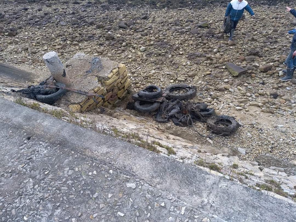 Résultats de cette matinée: 4 remorques pleines de pneus, déchets plastiques , morceaux de fer, de débris de verre.