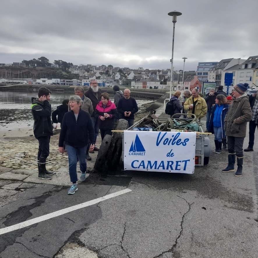 25 personnes se sont données rendez-vous place Charles de Gaulle dès 9h du matin en ce dimanche 19 février 2023: des personnes de la municipalité dont l’adjointe au port et la déléguée aux associations, Monique Herry, des pêcheurs, les amis du Ronvad, des membres de la SNSM, le capitaine du port ,un adhérent artisan voilier de Camaret, des bénévoles et 12 adhérents de Voiles de Camaret.