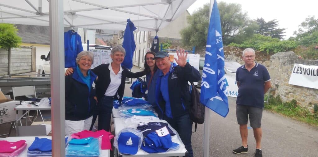 Les bénévoles de Voiles de Camaret vous attendent chaque mardi de l’été au marché hebdomadaire de Camaret-sur-mer. Ils tiennent un stand à proximité de la mairie , place d’Estienne d’Orves, pour vous proposer des articles au logo de l’association. Sont en vente polo, t-shirts, vestes, casquettes floqués ou brodés avec le beau logo de l’association pour adultes et enfants. Des sets de tables, des verres réutilisables sont aussi à la vente mais aussi des affiches de l’édition 2022 et de la future fête maritime de 2024.